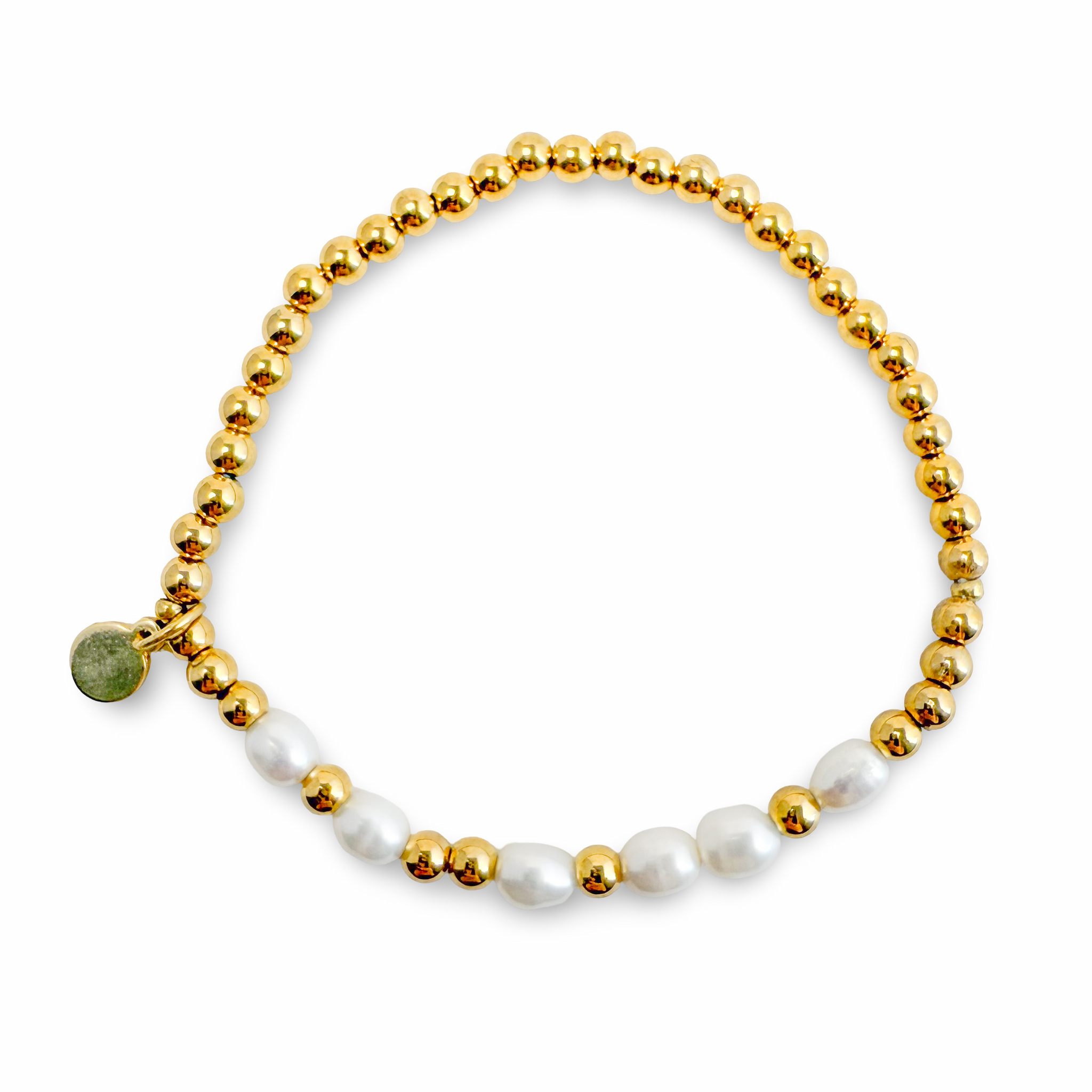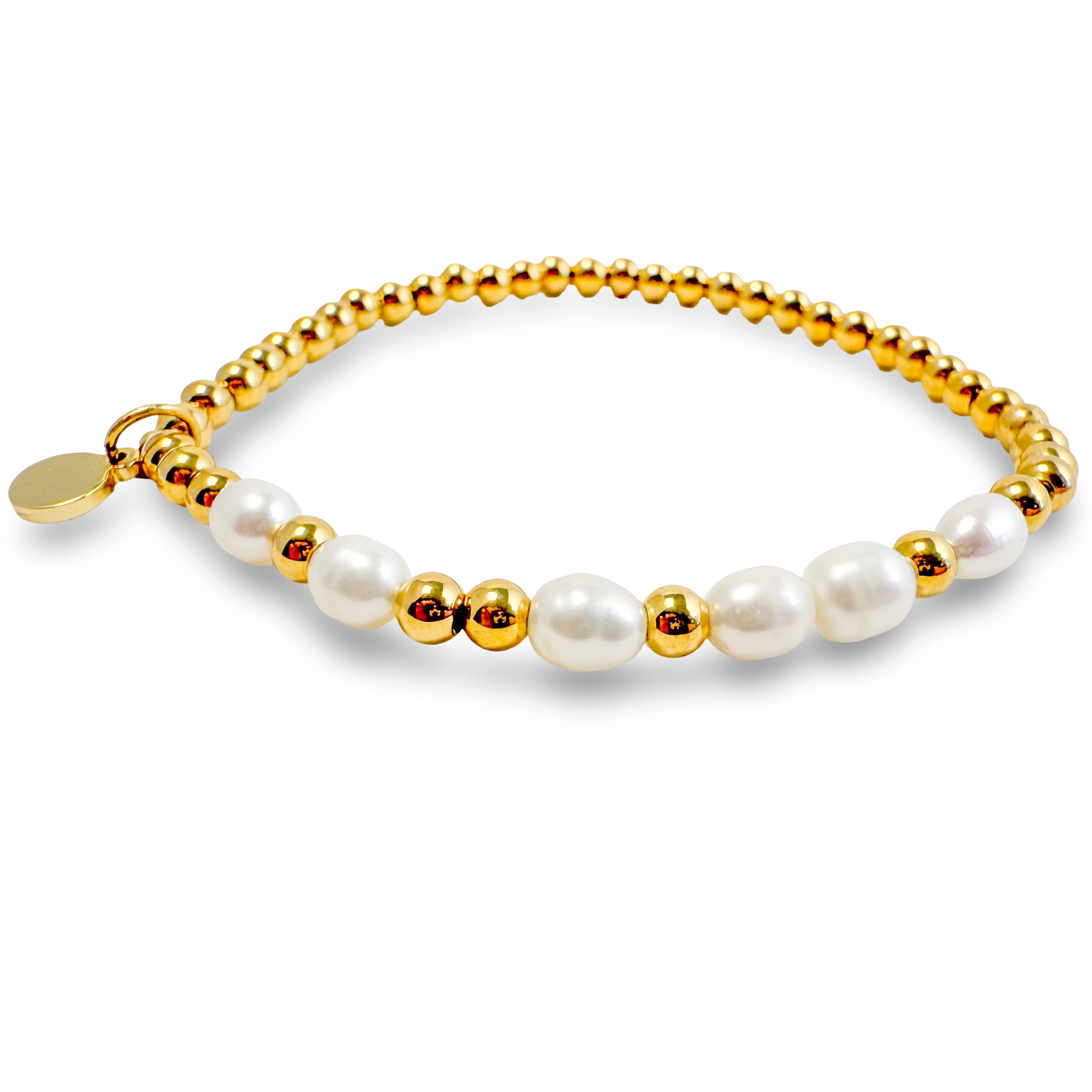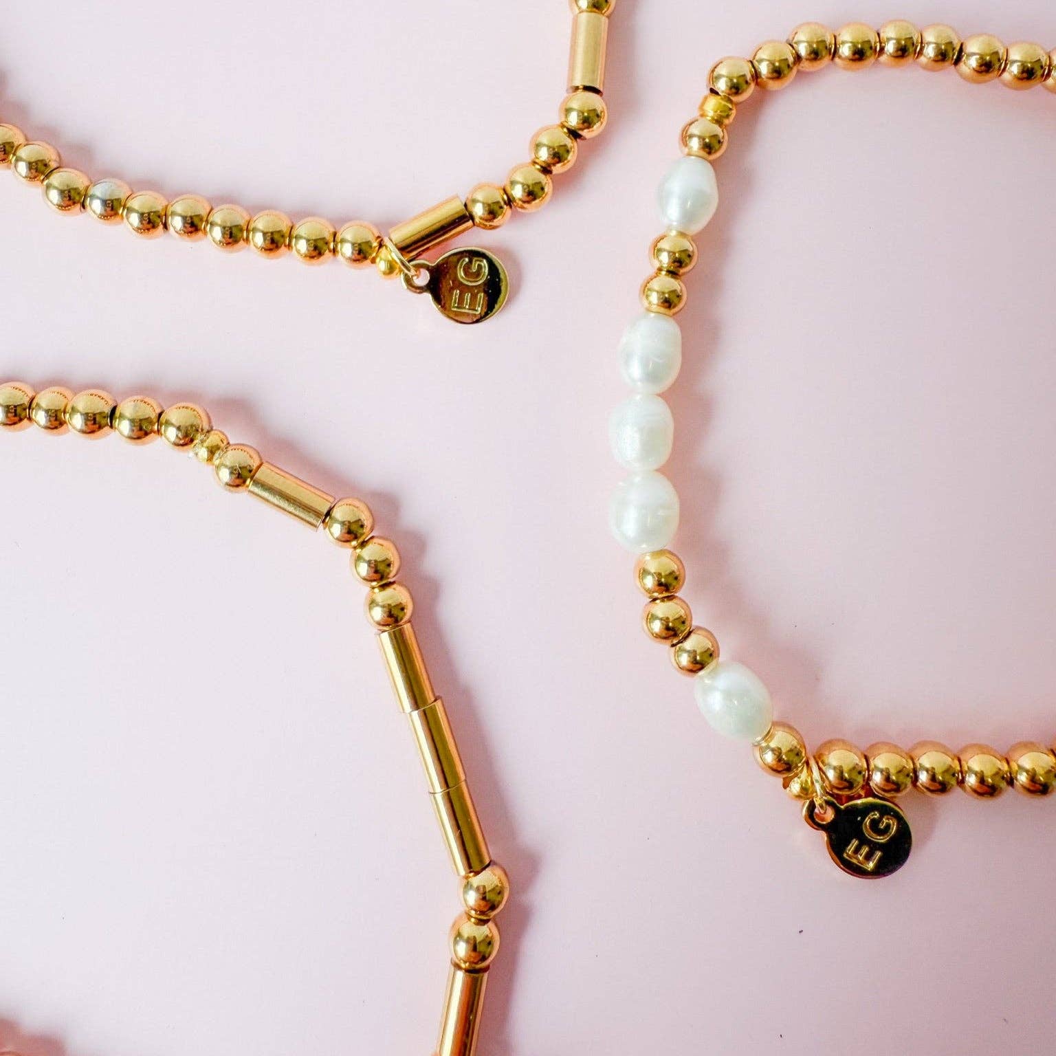 • Beads: 4mm 18k gold-plated PVD round beads (plated over stainless steel) & freshwater peals