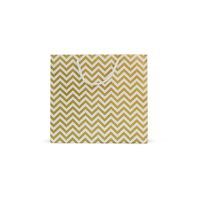 White & Gold Printed Gift Paper Carry Bag -Small (9 * 8 * 3Inches) (Pack of 5) (Zig Zag)