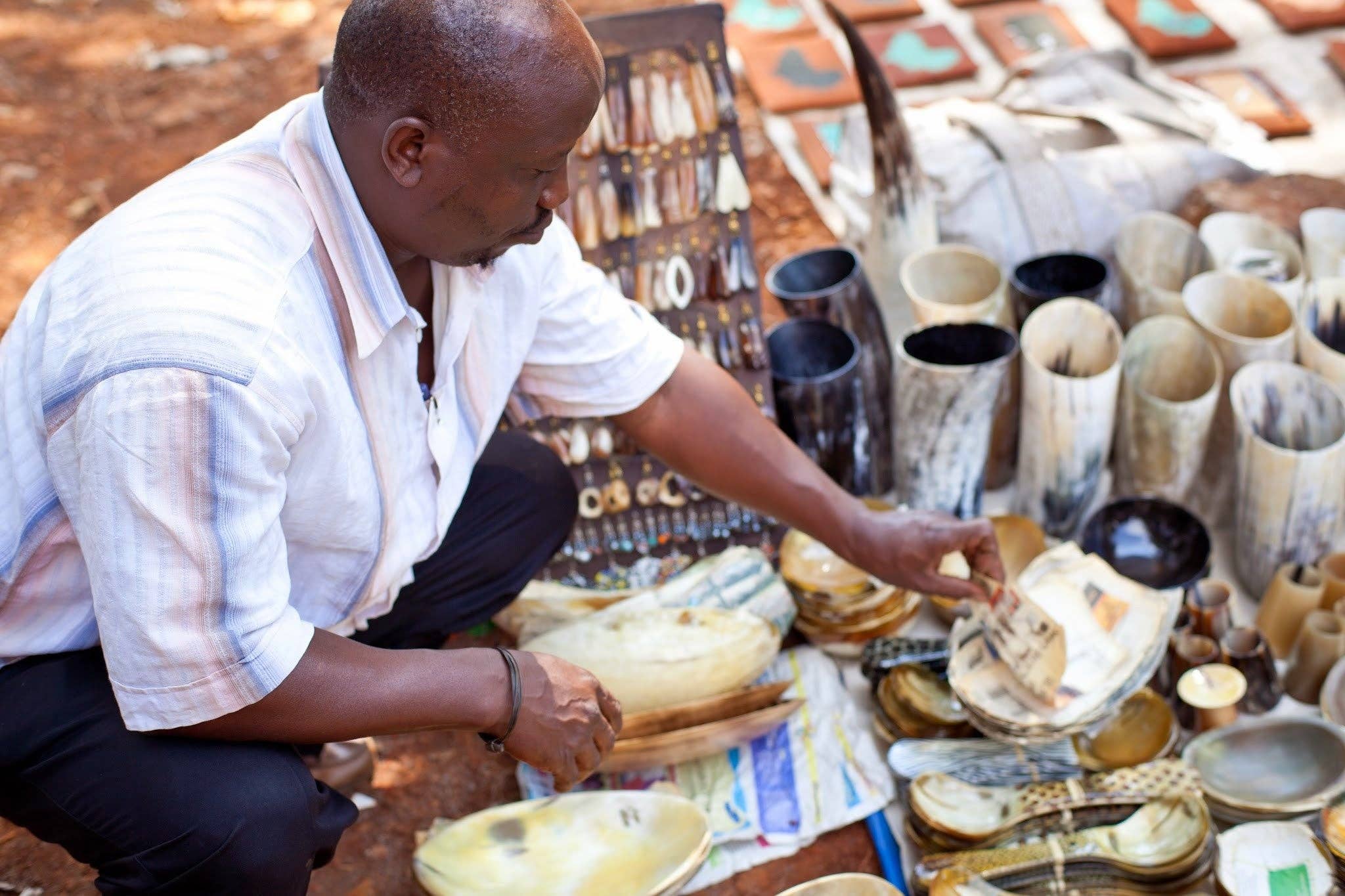 A handmade salt and pepper shaker set created out of real cow horn. These salt and pepper shakers bring a rustic, yet chic African touch to the table! Comes in a beautiful dried banana leaf box---a perfect gift set for the newlyweds or a new neighbor! A Kenyan market artisan partnership.